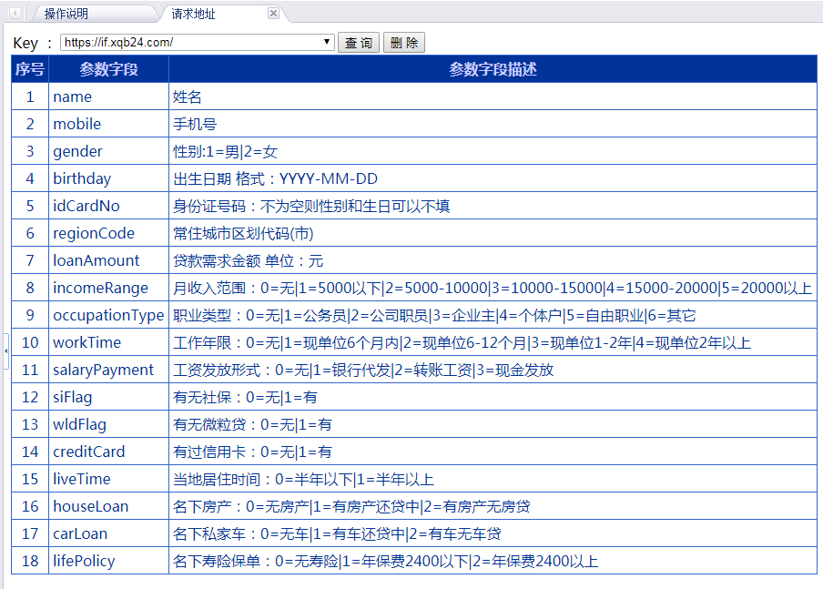 金融贷款信息提交API接口 提供意向贷款用户档案信息,验证用户贷款额度及信用。 支持验证的商家:壹财道、小钱包惠普、小钱包金融,小钱包平安惠普、小钱包氧气贷、嘟客贷款; 支付动态添加商家API接口,支持动态添加接口字段,根据不同的贷款商家API接口,动态生成导入模板,下载导入模板...